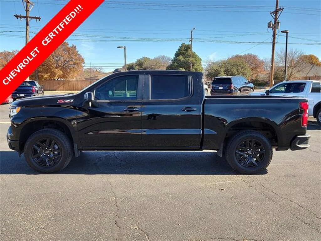 CARFAX One-Owner. Clean CARFAX. Certified. Black 2025 Chevrolet Silverado 1500 RST 4WD 10-Speed Automatic EcoTec3 5.3L V8 10-Speed Automatic, 4WD, Black Cloth, 10-Way Power Driver Seat w/Lumbar, 120-Volt Bed Mounted Power Outlet, 120-Volt Interior Power Outlet, Convenience Package, Convenience Package II, Dual Rear USB Ports (Charge Only), Dual-Zone Automatic Climate Control, Electric Rear-Window Defogger, Heated Driver & Front Outboard Passenger Seats, Heated Steering Wheel, Hitch Guidance w/Hitch View, In-Vehicle Trailering System App, Keyless Open & Start, LED Cargo Area Lighting, Manual Tilt/Telescoping Steering Column, Power Sliding Rear Window w/Rear Defogger, Premium Bose 7-Speaker Sound System, Remote Vehicle Starter System, Theft Deterrent System (Unauthorized Entry), Universal Home Remote, Wrapped Steering Wheel.