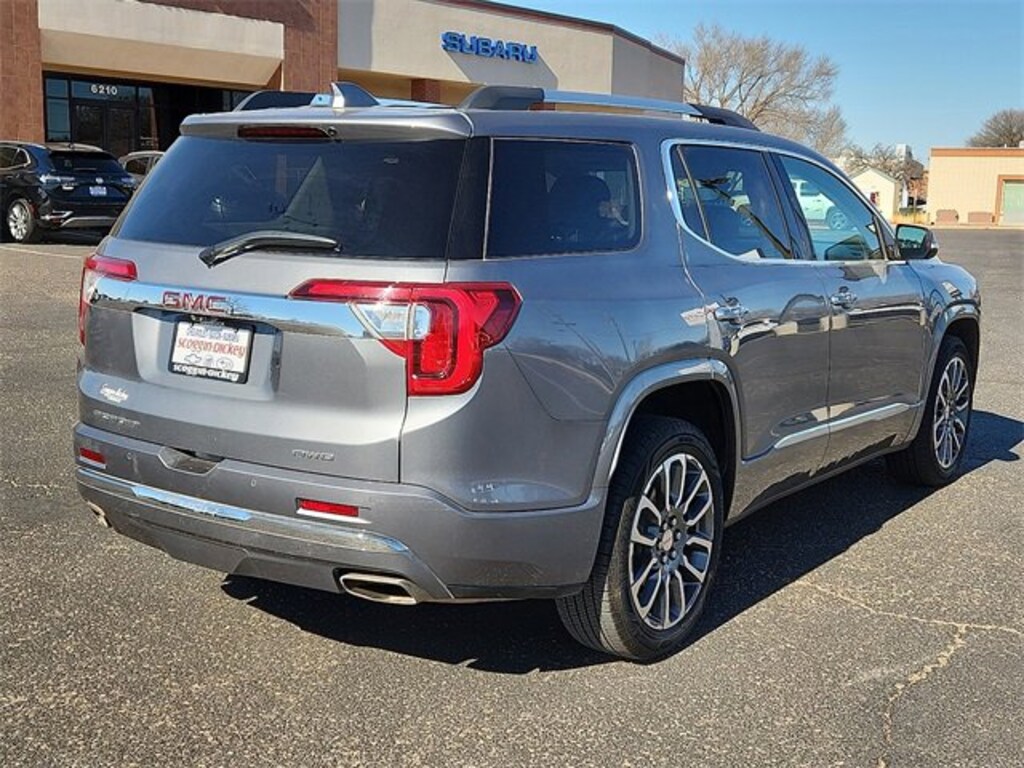 Clean CARFAX. Satin Steel Metallic 2021 GMC Acadia Denali AWD 9-Speed Automatic 3.6L V6 SIDI AWD, Dark Galvanized/Light Shale Leather, 170 Amp Alternator, Adaptive Cruise Control, Adaptive Ride Control, Bose Premium 8-Speaker Audio System Feature, Denali Technology Package, Denali Ultimate Package, Dual SkyScape 2-Panel Power Sunroof, Electronic Cruise Control w/Set & Resume Speed, Enhanced Automatic Emergency Braking, HD Surround Vision, Heavy-Duty Cooling System, Hitch Guidance w/Hitch View, Navigation System, Performance Ride & Handling Suspension, Preferred Equipment Group 5SA, Premium audio system: GMC Infotainment System, Rear Camera Mirror, Rear Camera Mirror Washer, Trailering Assist Guidelines, Trailering Package.19/26 City/Highway MPG